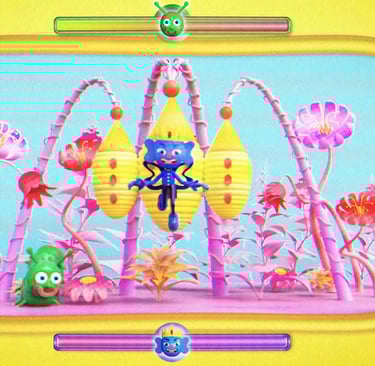 Réalisation d’une animation rétrogaming mêlant 3D et 2D, recréant l’esthétique des jeux vintage.